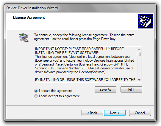 to begin the driver installation.
